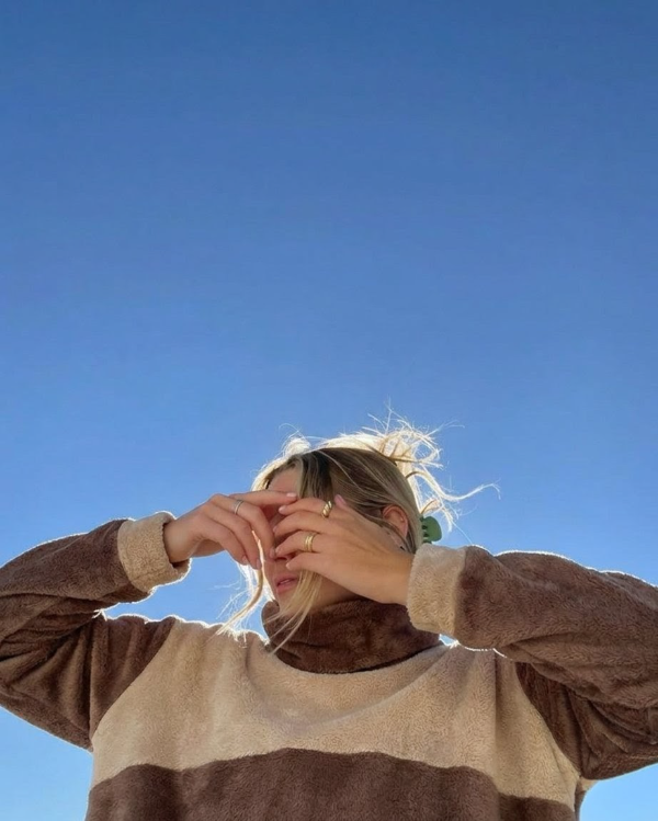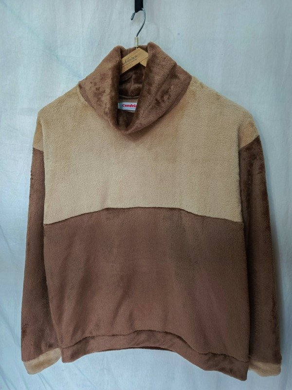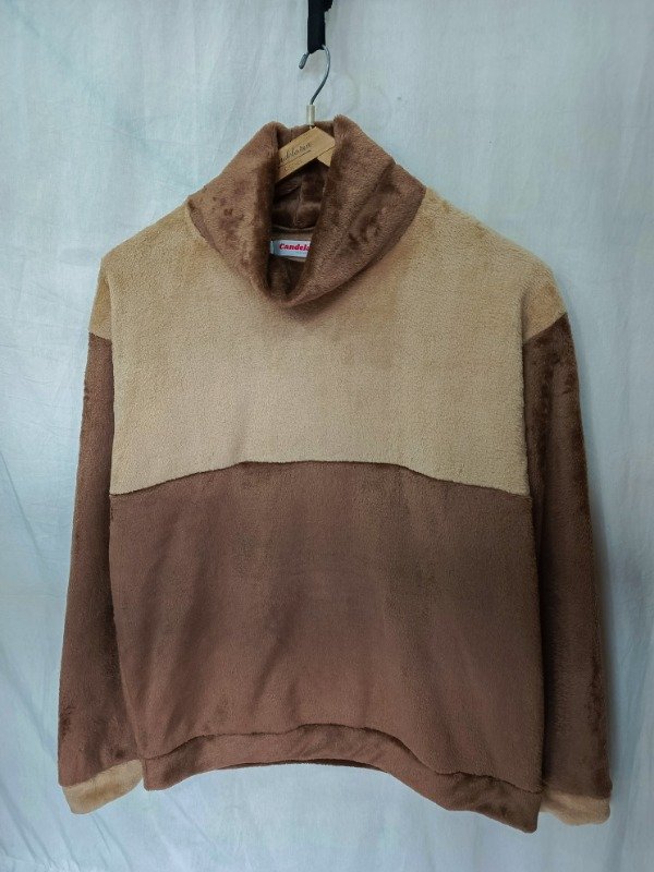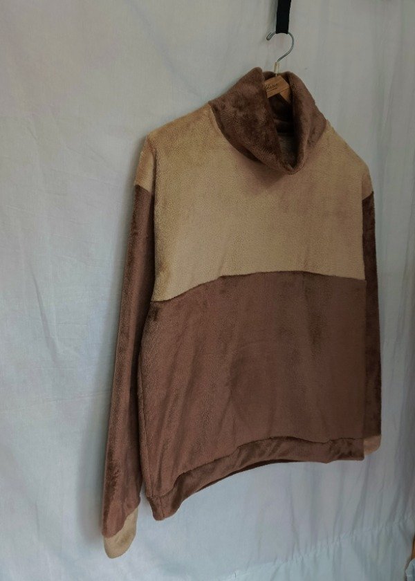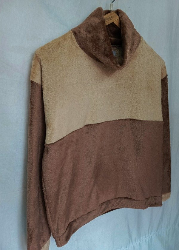 Confeccionado en polar soft chocolate brilloso y beige es amplio, cómodo de estilo oversize muy abrigado.