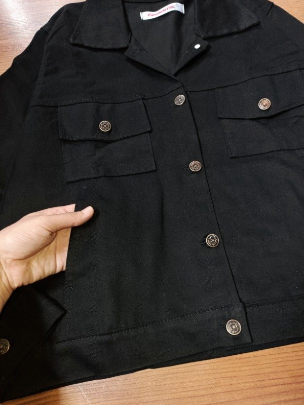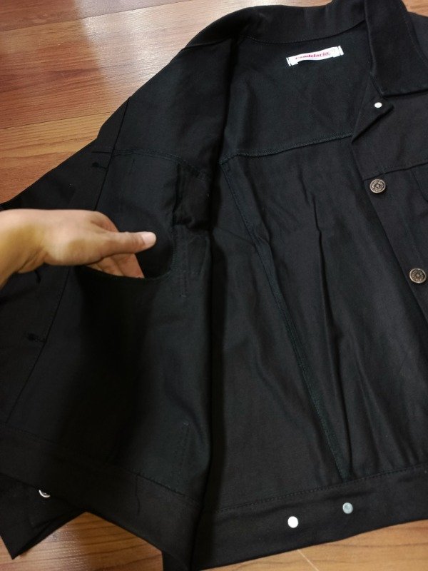 Tiene botones niquelados y 6 bolsillos en total, 4 delanteros y 2 en el interior.