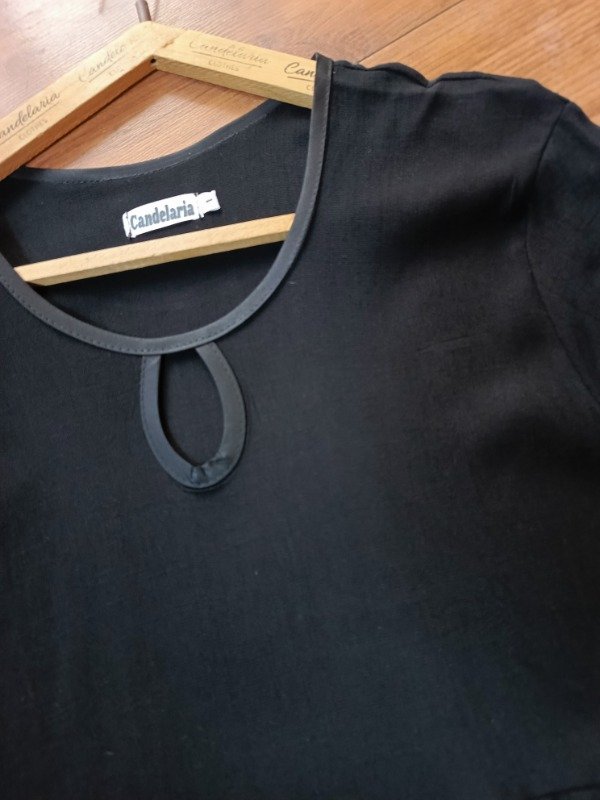 Tiene mangas escote redondo y detalle de la gota delantera envivada.