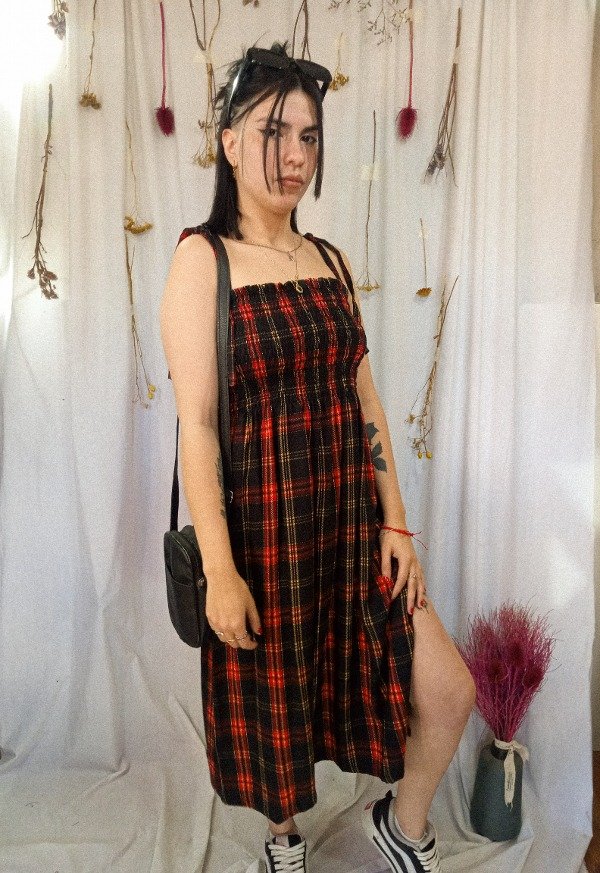 Es un vestido fruncido con hilo elástico de algodón (si! El proceso de fruncido es uno a uno, línea por linea 100% hecho a mano) que se adapta perfectamente al cuerpo, es ideal para usar sin corpiño.